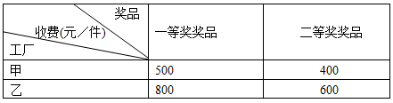 【题文】某赛事组委会要为获奖者定做某工艺品作为奖品,其中一等奖奖品3件,二等奖奖品6件. 制作一等奖和二等奖奖品所用原料完全相同,但工艺不同,故价格有所差异. 现有甲、乙两家工厂可以制作奖品(一等奖、二等奖奖品均符合要求),甲厂收费便宜,但原料有限,最多只能制作4件奖品,乙厂原料充足,但收费较贵,其具体收费情况如下表: