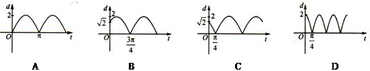 ,角速度为1,那么点P到x轴距离d关于时间t的函数图象大致为( )