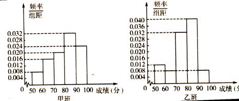 【题文】(本题满分12分)某中学将100名高一新生分成水平相同的甲,乙两个“平行班”,每班50人。陈老师采用A,B两种不同的教学方式分别在甲,乙两个班级进行教改实验。为了解教学效果,期末考试后,陈老师对甲,乙两个班级的学生成绩进行统计分析,画出频率分布直方图(如下图),计成绩不低于90分者为“成绩优秀”.
