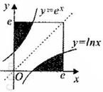【题文】如图,在边长为e(e为自然对数的底数)的正方形中随机撒一粒黄豆, 则它落到阴影部分的概率为( )