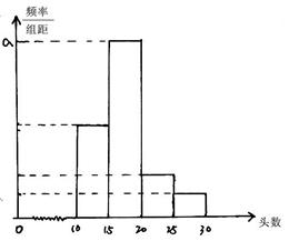 【题文】某省对省内养殖场“瘦肉精”使用情况进行检查,在全省的养殖场随机抽取M个养殖场的猪作为样本,得到M个养殖场“瘦肉精”检测阳性猪的头数,根据此数据作出了频率分布表和频率分布直方图如下: