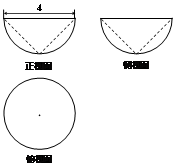 【题文】如图为一个半球挖去一个圆锥的几何体的三视图,则该几何体的体积为( )
