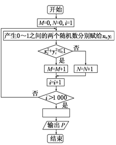 【题文】如图所示是用模拟方法估计圆周率π值的程序框图,P表示估计结果,则图中空白框内应填入( )
