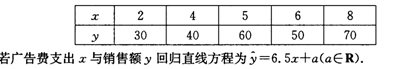 若广告费支出z与销售额y回归直线方程为多一6.5z+n(n∈R).