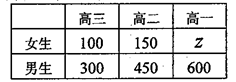 【题文】某学校高一、高二、高三的三个年级学生人数如下表: