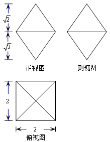 【题文】由两个四棱锥组合而成的空间几何体的三视图如图所示,则其体积是