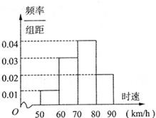 【题文】某地区对某路段公路上行驶的汽车速度实施监控,从中抽取50辆汽车进行测速分析,得到如图所示的时速的频率分布直方图,根据该图,时速在70 km/h以下的汽车有