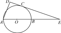 为直径的圆O与边DE相切于点C,若AB=3,则线段CD的长为.