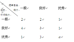 位已经选拔入围的学生进行运动协调能力和逻辑思维能力的测试,其测试结果如下表: