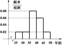 ,由统计的数据得到的频率分布直方图如图所示,下表是年龄的频率分布表。