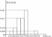 【题文】从某学校高三年级男生随机抽取若干名测量身高,发现测量数据全部介于155cm和195cm之间且每个男生被抽取到的概率为