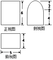 【题文】某几何体的三视图如图(其中侧视图中的圆弧是半圆),则该几何体的表面积为( )