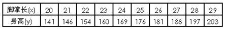 【题文】一般来说,一个人脚掌越长,他的身高就越高。现对10名成年人的脚掌长