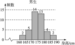 【题文】为了解学生身高情况,某校以10%的比例对全校700名学生按性别进行分层抽样调查,测得身高情况的统计图如下: