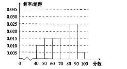 (Ⅲ)若从60名学生中随机抽取2人,抽到的学生成绩在[40,70)记0分,记[70,100]记1分,用X表示抽取结束后的总记分,求X的分布列和数学期望。
