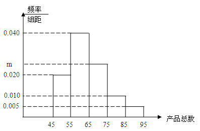 为调查某工厂工人生产某种产品的能力,随机抽查了一些工人某天生产产品的数量,产品数量的分组区间为[45,55), [55,65), [65,75), [75,85), [85,95),由此得到频率分布直方图如图所示,保存中不慎丢失一些数据,但已知第一组 ([45,55) ]有4人;