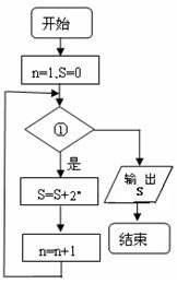 【题文】如右图,若程序框图输出的S是126,则判断框①中应为 ( )