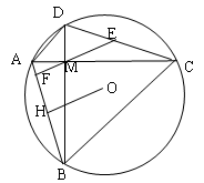 如图,四边形ACBD内接于圆O,对角线AC与BD相交于M,AC⊥BD,E是DC中点连结EM交AB于F,作OH⊥AB于HH,