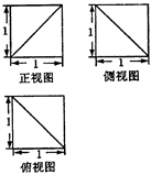 【题文】从一个棱长为1的正方体中切去一部分,得到一个几何体,其三视图如图,则该几何体的体积为 ______________