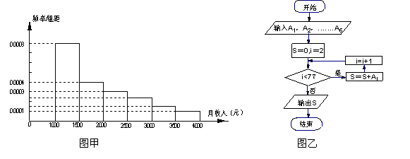 .图乙是统计图甲中月工资收入在一定范围内的人数的算法流程图,则样本的容量