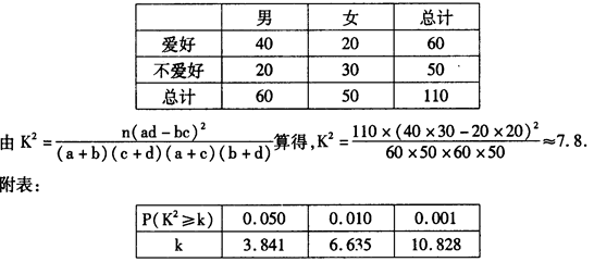 【题文】通过随机询问110名性别不同的大学生是否爱好某项运动,得到如下的列联表:
