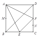 的正方形ABCD中,E、F分别为BC、CD的中点,M、N分别为AB、CF的中点,现沿AE、AF、EF折叠,使B、C、D三点重合,构成一个三棱锥.