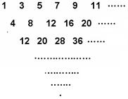 ;⑵ 从第二行起,各行中的每一个数都等于它肩上的两数之和;⑶ 数阵共有