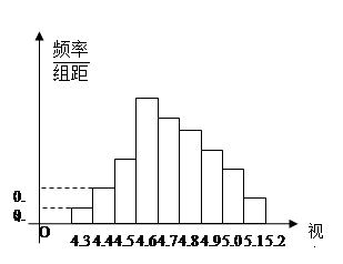 【题文】为了解某校高三学生的视力情况,随机地抽查了该校100名学生的视力情况,得到频率分布直方图如下左图,由于不慎将部分数据丢失,只知道前4组的频数成等比数列,后6组的频数成等差数列,设最大频率为a,视力在4.6到5.1之间的学生人数为b,则a和b的值分别为( )