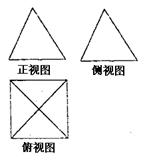 【题文】如图是一个空间几何体的正视图、侧视图、俯视图,如果正视图、侧视图所对应的三角形皆为边长为2的正三角形,俯视图对应的四边形为正方形,那么这个几何体的体积为( )