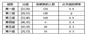 人进行了一次生活习惯是否符合低碳观念的调查,若生活习惯符合低碳观念的称为“低碳族”,否则称为“非低碳族”,得到如下统计表和各年龄段人数频率分布直方图: