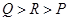 ,则P,Q,R的大小关系为