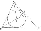 如图,锐角△ABC的内心为I,过点A作直线BI的垂线,垂足为H,点E为内切圆I与边CA的切点.