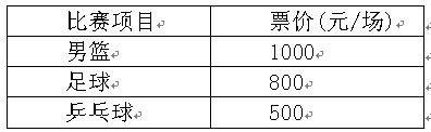 【题文】2008年北京成功举办了第29届奥运会,中国取得了51金、21银、28铜的骄人成绩.下表为北京奥运会官方票务网站公布的几种球类比赛的门票价格,某球迷赛前准备用12000元预订15张下表中球类比赛的门票: