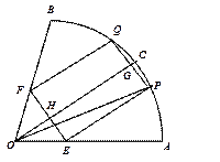 的扇形金属材料中剪出一个长方形EPQF,并且EP与∠AOB的平分线OC平行,设∠POC=θ.