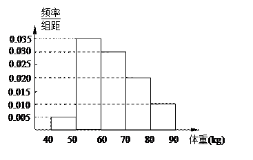 【题文】从某地高中男生中随机抽取100名同学,将他们的体重(单位:kg)数据绘制成频率分布直方图(如图).由图中数据可知体重的平均值为