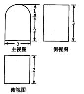 【题文】已知某个几何体的三视图如图(主视图中的弧线是半圆),根据图中标出的尺寸,可得这个几何体的体积是 ( )