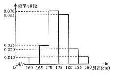 为了调查某中学高三学生的身高情况,在该中学高三学生中随机抽取了40名同学作为样本,测得他们的身高后,画出频率分布直方图如下: