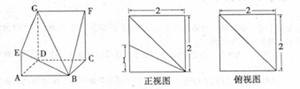 如图,多面体ABCD—EFG中,底面ABCD为正方形,GD//FC//AE,AE⊥平面ABCD,其正视图、俯视图如下: