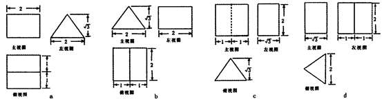 【题文】已知正三棱柱的侧棱长与底面边长都是2,以下给出a,b,c,d四种不同的三视图,其中可以正确表示这个正三棱柱的三视图的个数有
