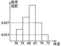 【题文】. 为了了解我校今年准备报考飞行员的学生的体重情况,将所得的数据整理后,画出了频率分布直方图(如图),已知图中从左到右的前3个小组的频率之比为1∶2∶3,第2小组的频数为12,则报考飞行员的学生人数是