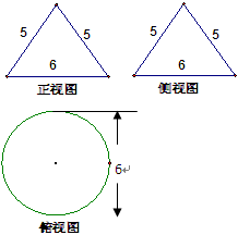 【题文】有一个几何体的三视图及其尺寸如下(单位:cm),则该几何体的体积为: