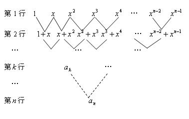 ,从第二行起每个数都等于它肩上两个数的和,第