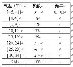 【题文】(本题满分12分)为研究气候的变化趋势,某市气象部门统计了共100个星期中每个星期气温的最高温度和最低温度