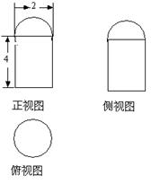 【题文】已知一个空间几何体的三视图如图所示,其中正视图、侧视图都是由半圆和矩形组成,根据图中标出的尺寸,计算这个几何体的表面积是