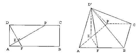 已知P在矩形ABCD边DC上,AB=2,BC=1,F在AB上且DF ⊥AP,垂足为E,将△ADP沿AP折起.使点D位于D′位置,连D′B、D′C得四棱锥D′—ABCP.