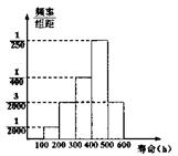 【题文】对某种电子元件进行寿命跟踪调查,所得样本频率分布直方图如右图,由图可知:一批电子元件中,寿命在100~300小时的电子元件的数量与寿命在300~600小时的电子元件的数量的比大约是 ( )